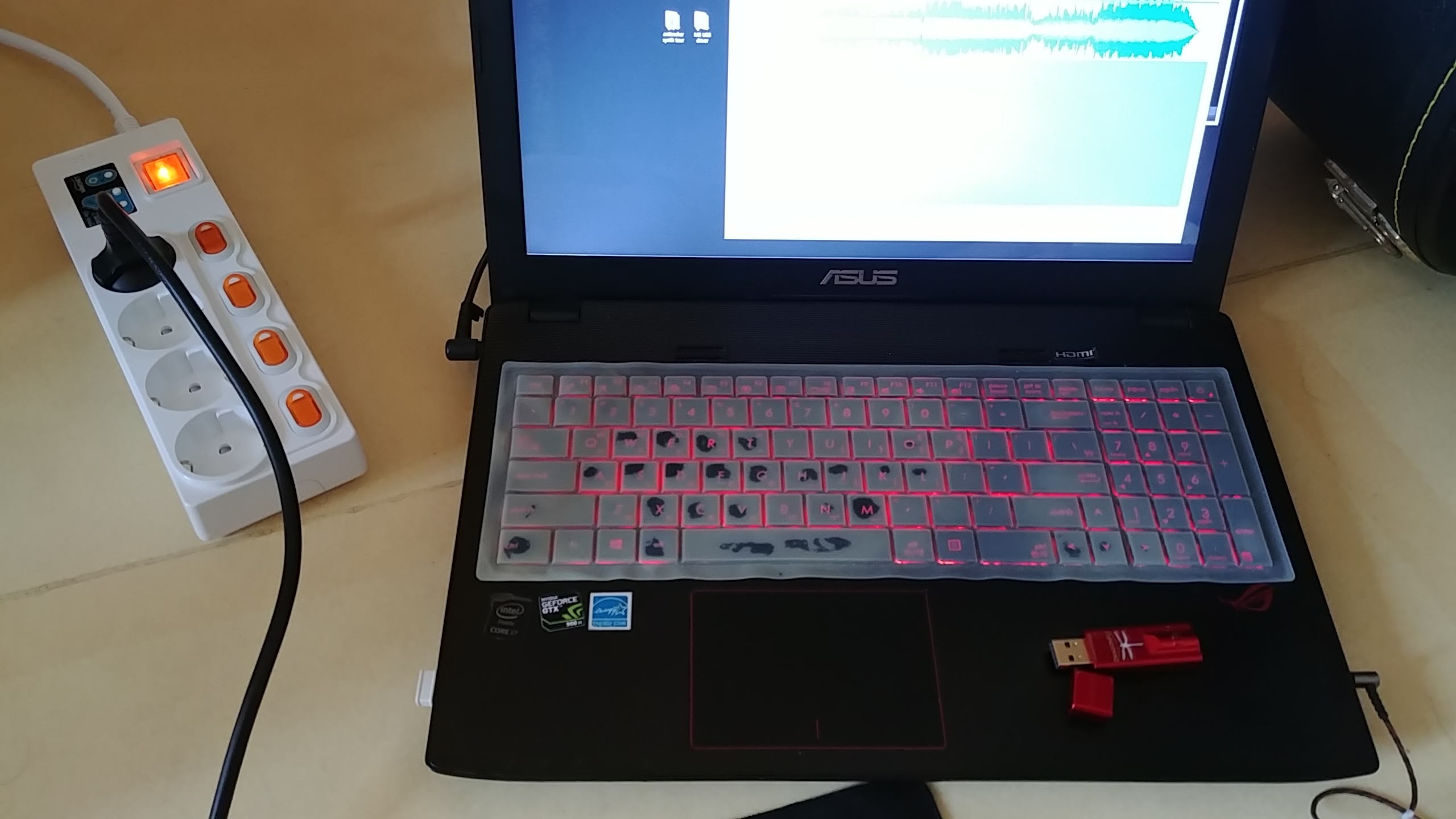 일단 기존의 일반 멀티탭을 연결하면, 접지가 되지 않아서 저음역에 험 노이즈가 들립니다. 접지 멀티탭을 연결하고 나서 들어보니 저음역의 험 노이즈가 거의 소멸되었습니다. 이따금씩 전기 회로에서 들리는 스퀘어파 비슷한 노이즈가 들리는데, 이건 드래곤 플라이를 연결해서 들으면 들리지 않는 것으로 봐선, 멀티탭은 정상이고, 노트북 자체의 회로상 문제 같습니다.