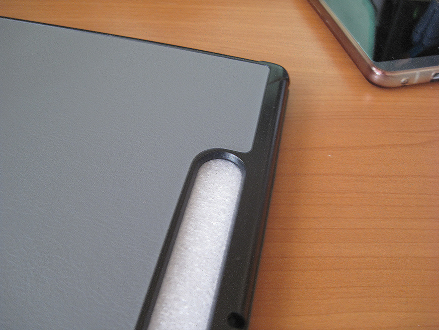 제 기준에선 웃기는 일이며, 기울어지지 않는 케이스를 씌워야겠다 생각했고, 제 구매 시점에 유일하게 케이스 뒷면 높이를 보정해서 기울어짐을 원천적으로 방지하는 물건을 하나 찾았습니다. 그러나, 물건이 도착한 후 장착을 해보니, 펜 높이가 약 5mm라 3mm 두께의 후면은 약간이지만 기울어질 수밖에 없었습니다. 나머지 부분은 무난한 편이었습니다.