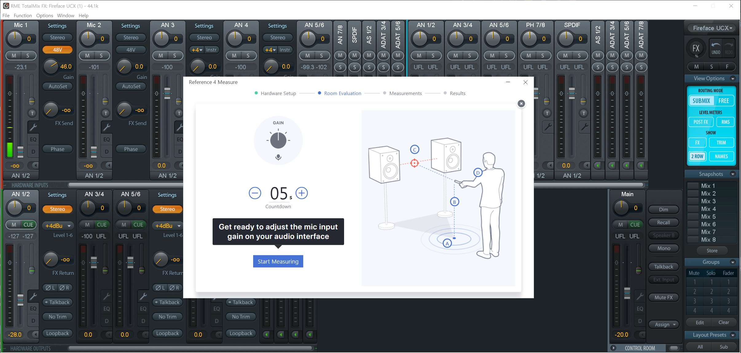일단 좀 유의해야 할 것은, 스텝1에서 마이크의 게인을 상당히 올려야 하고, 스피커로의 아웃풋도 꽤 올려야 한다는 겁니다.