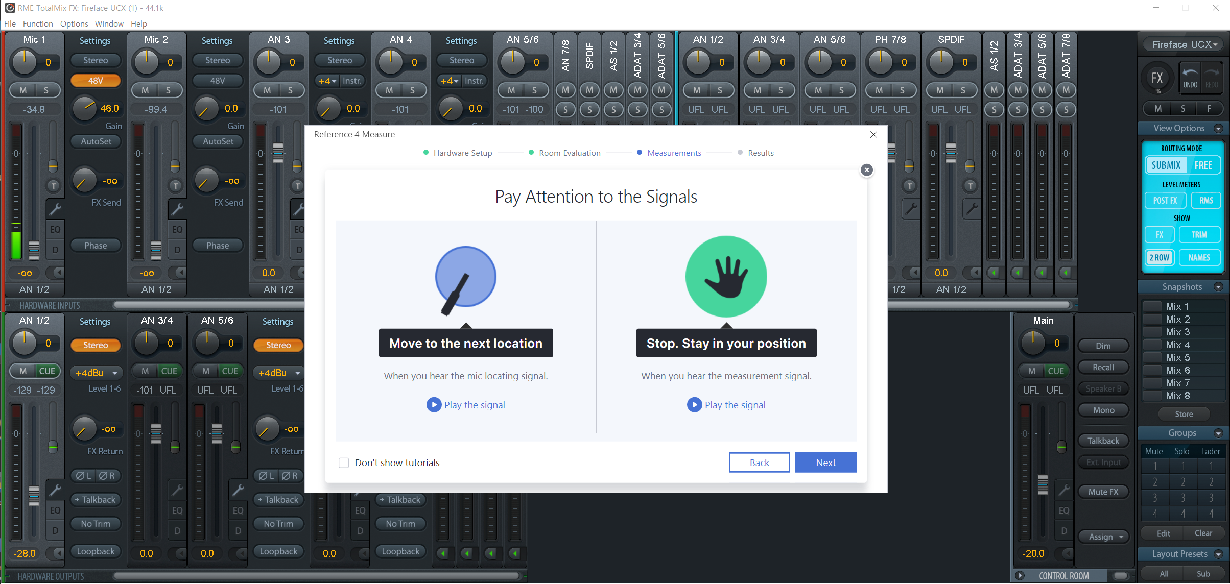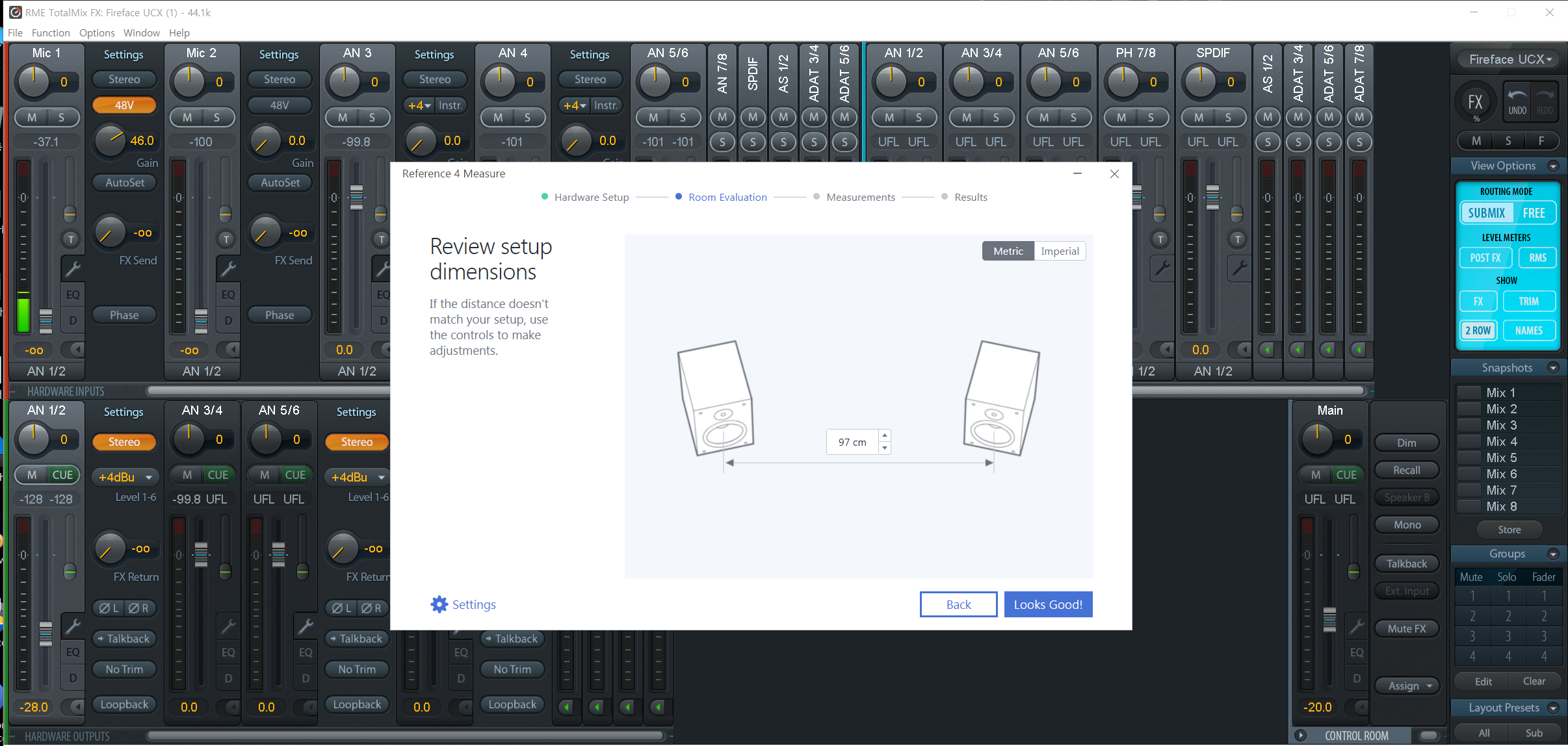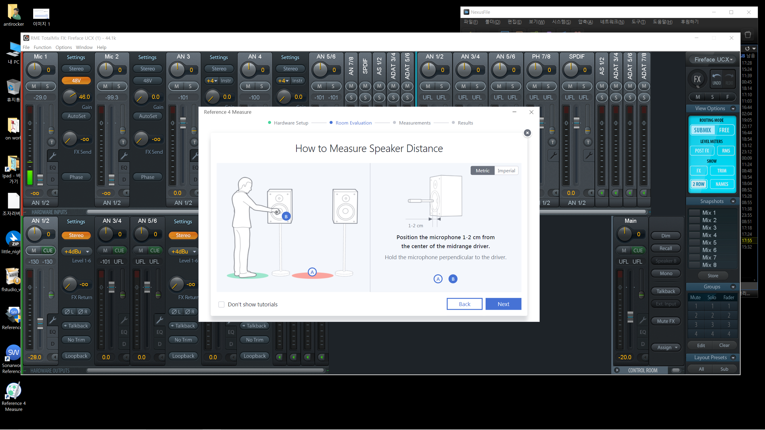 스텝2로 스피커 간 거리, 스피커와 청자 간 거리를 잽니다. 스텝1을 무사히 넘겼다면 그냥 튜토리얼 따라 진행하면 금방 끝납니다.